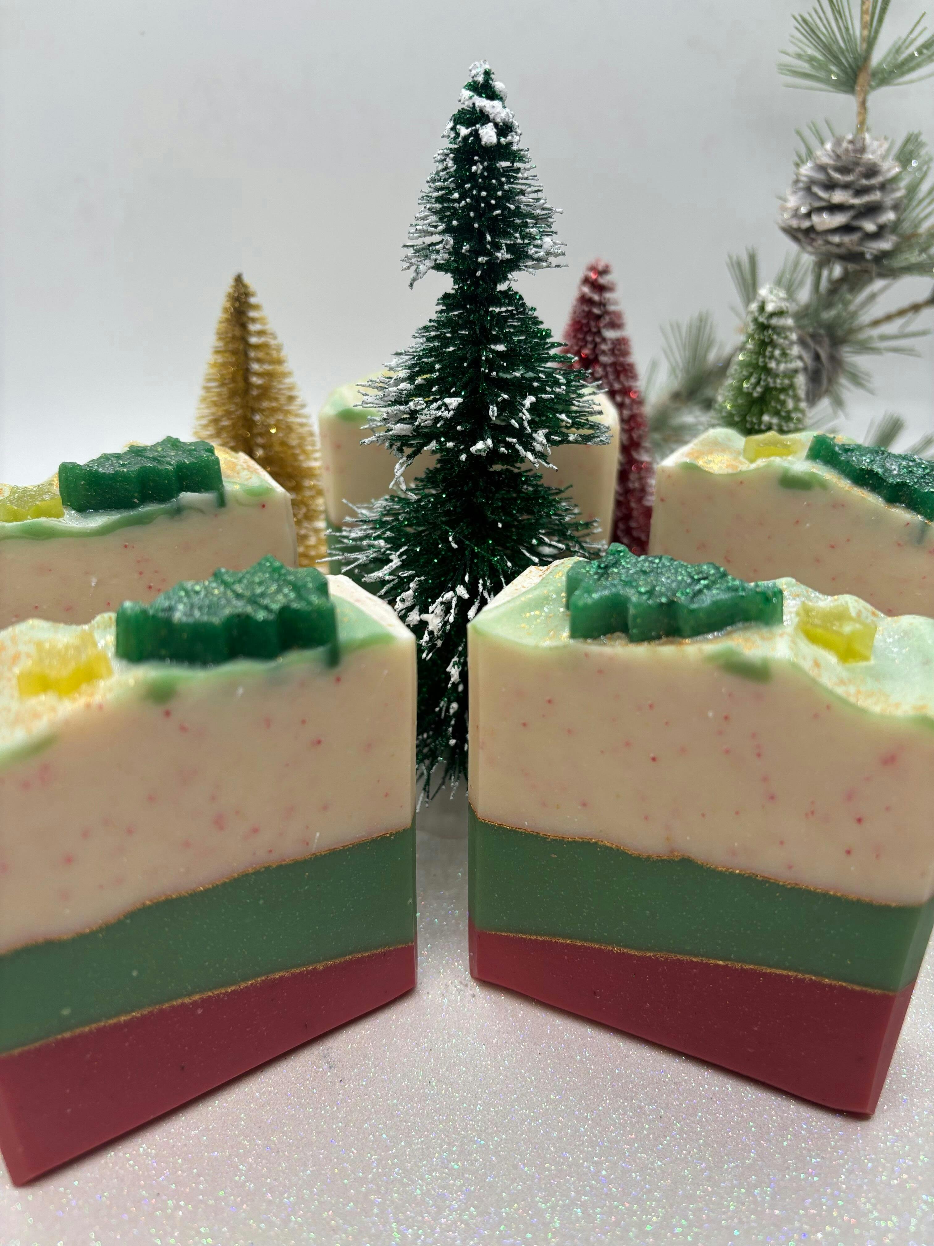 Nice fluid soapmaking batter! No issues. You can add the fragrance all at once without worry. The scent is very nice on its own. I call it Tree Farm & it does well.