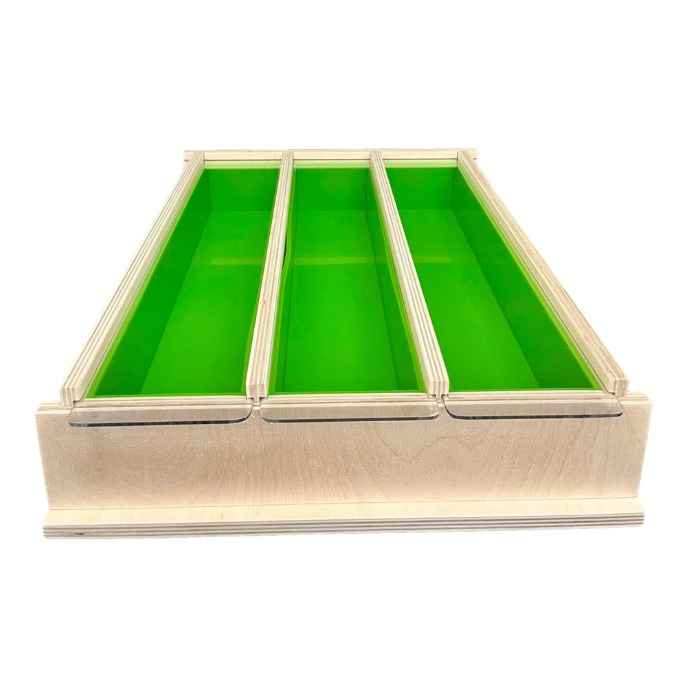 This 15 lb Triple Premium Mold is designed for maximum yield and longevity. This mold features clear lids for viewing the soap as it gels. This limits contact with air, which can decrease ash and improve soap quality. It has removable sides for easy removal of the liner.