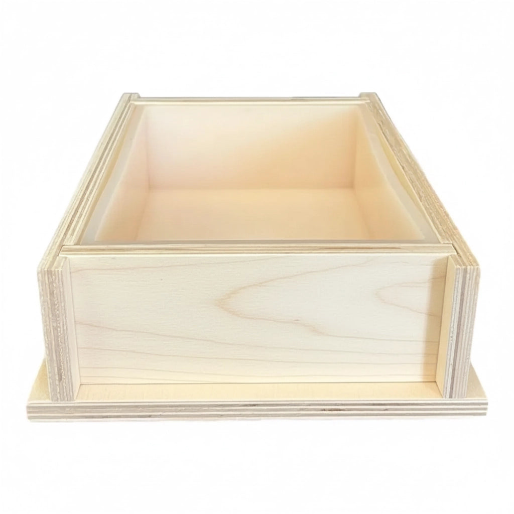 Our 4 lb Basic Slab Mold provides customizable dimensions for soap bars, allowing for flexibility in size. The removable end pieces of the wooden mold make liner removal a breeze.