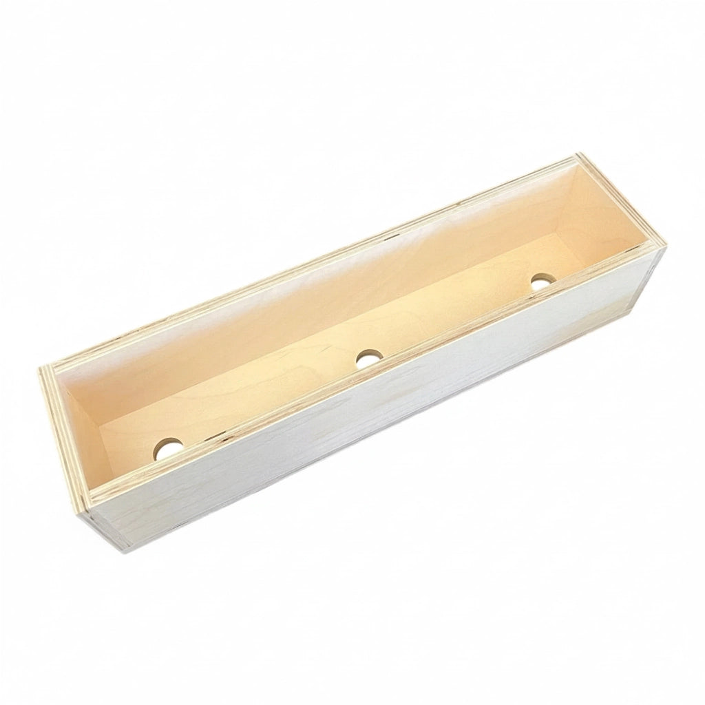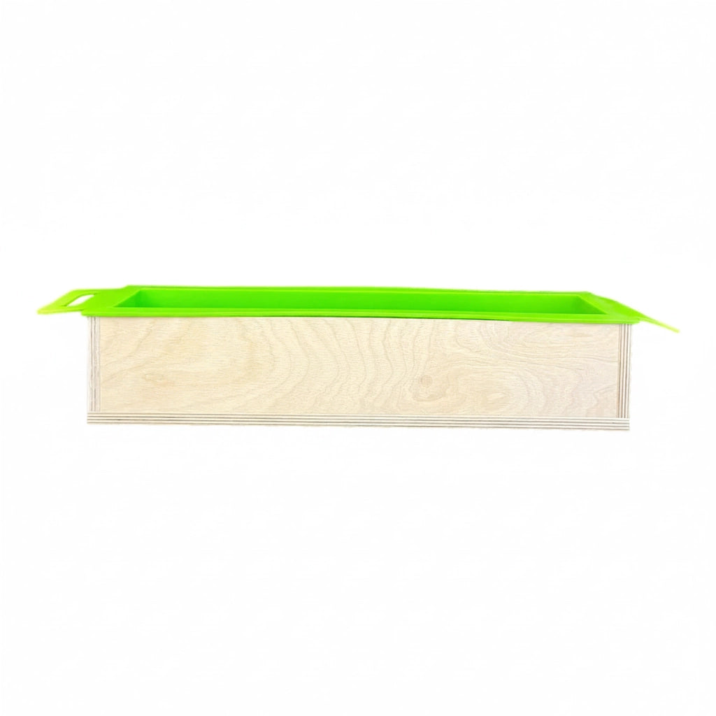 The 7.5 lb Basic Handle Mold is designed with a liner that includes convenient handles for easy soap making. The silicone coating on the mold protects the wood from getting dirty, and the liner ensures effortless soap release.