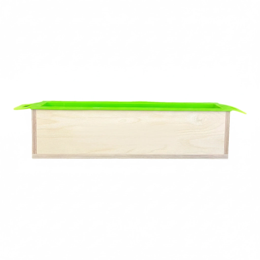 Our 7.5 lb Basic Handle Tall Skinny Mold features handles on the liner to allow effortless removal from the soap mold box. The silicone covers the sides of the mold to keep the wood clean and ensures easy removal of the liner from your soap.