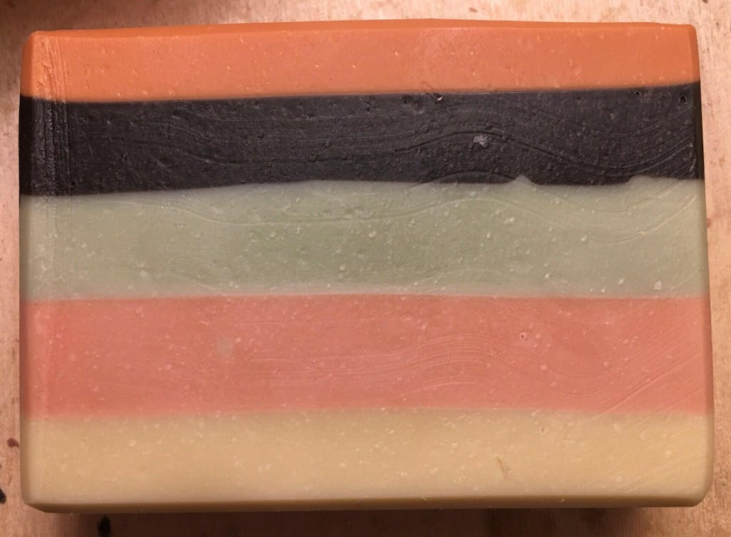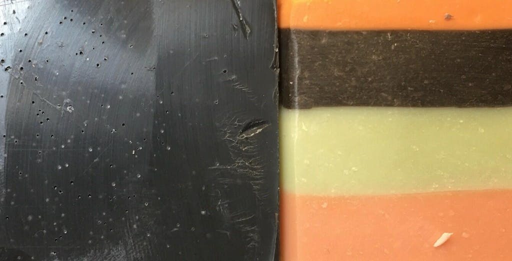 I needed some black soap for a project I am working on. I add the Black Brazilian Clay (BBC) first to see how the batter looked with just the clay. It was almost as black as the Activated Charcoal (AC) gives me, not quite as black but almost. I went ahead and add AC to get it up to the black color needed. The acceleration of trace was minimal and the soap turned out great. I will definitely be using this in the future with my darker soaps I want clay in and I will purchase BBC again. Update: I have added a picture of a test batch of soap I made using the various clays I had on hand. The second layer down is made with BBC. I mixed 1.25 tsp of BBC with 1 tbsp of distilled water. I added this mixture to approximately 6 oz of CP soap batter. It came out fairly black with just a hint of brown. For comparison I have added a picture of the striped soap up against a block of CP soap I made with AC and BBC. You can definitely see the brownish tinge in the one that only uses BBC for colorant in the comparison picture.
