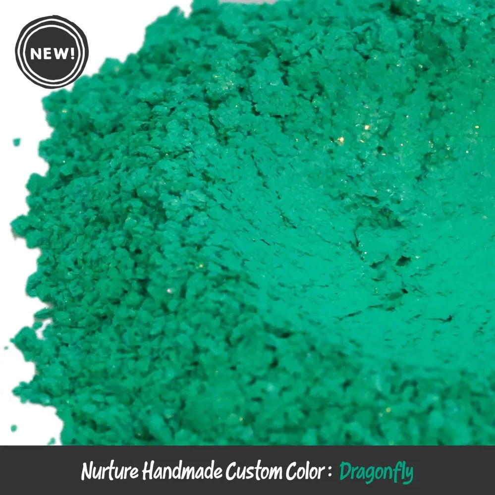 Dragonfly is a Nurture Handmade custom mica powder that shimmers with the same magic as a dragonfly’s wings. Its vivid blue-green base comes alive with a cascade of sparkling light, shifting and glinting as if in flight. Playful yet enchanting, it captures that perfect mix of nature’s beauty and a touch of fantasy - a color that flutters, gleams, and refuses to be ordinary!